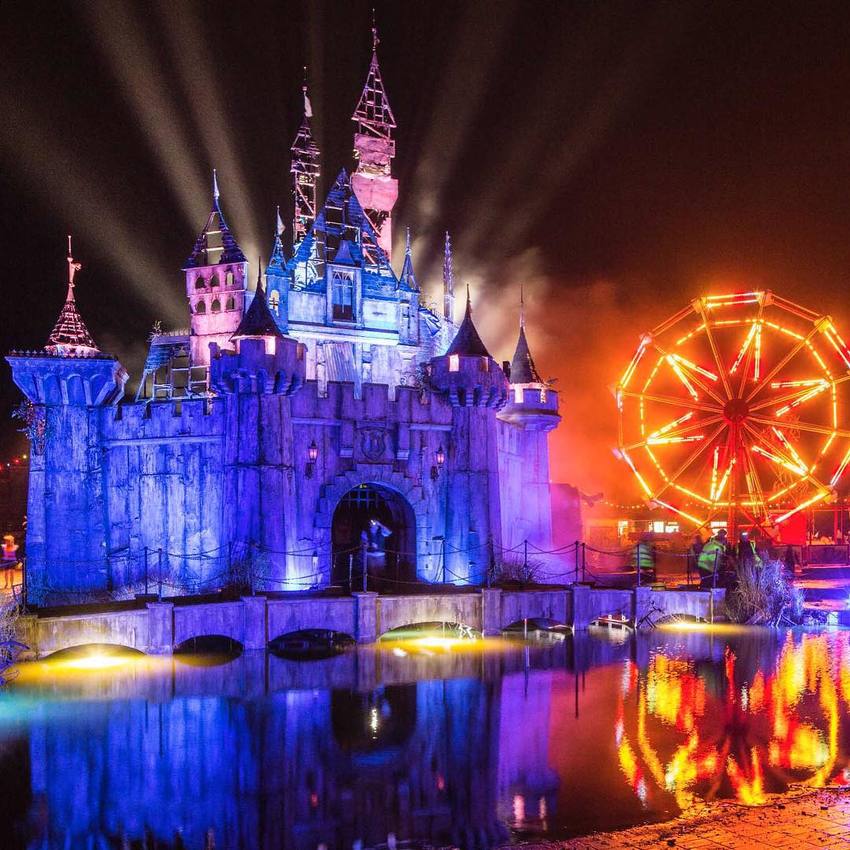 夜晚的幻彩燈光掩蓋了Dismaland灰暗的本質
