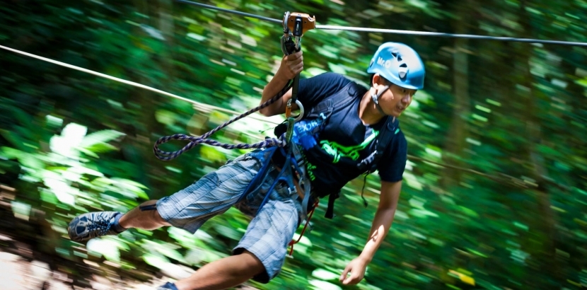 ˙3公里熱帶雨林滑索之旅,每團(最多9人)會安排2位滑翔教練同行。