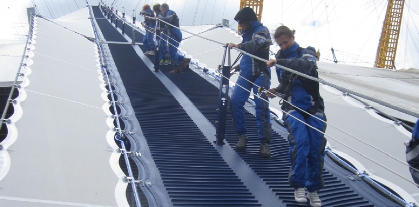 想挑戰自己膽量?可以試試走上O2體育館頂峰,拱形外殼上一條藍色走道,讓你爬上「天台」欣賞倫敦景色。你需要鼓起勇氣,走上傾斜30°的通道,去到離地52米的圓形觀景台,在這裡可以欣賞到360°倫敦全景和許多地標性建築。